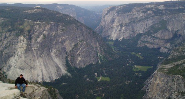 P.S. Tom, thanks again and again for these amazing pics!  This is Tom sitting on “the diving board” on the edge of Half Dome in Yosemite National Park.  There are about 2,000 vertical feet under Tom here, friends.  Great picture of staying right on the edge and yet strangly feeling peace, knowing that the Rock will not drop us, and yet as we stay extended and leaning into the LORD’s goodness, we can experience the enlivening greatness of His worth!  I’ve layed out on this rock and looked down for extended periods of time.  It’s a rush, and yet you KNOW you’re okay.  The ROCK is solid, friends!  We can trust HIM and we can much more enjoy life as we do, no matter how freaky it all looks.  The ROCK is good and He is real and trustworthy!
